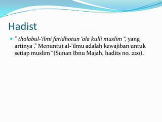 Hadist Menuntut Ilmu Tholabul Ilmi Faridhotun Ala Kulli Muslimin Nusagates from image.slidesharecdn.com Tholabul ilmi faridhotun ala kulli muslim. Maybe you would like to learn more about one of these? Check spelling or type a new query. We did not find results for: